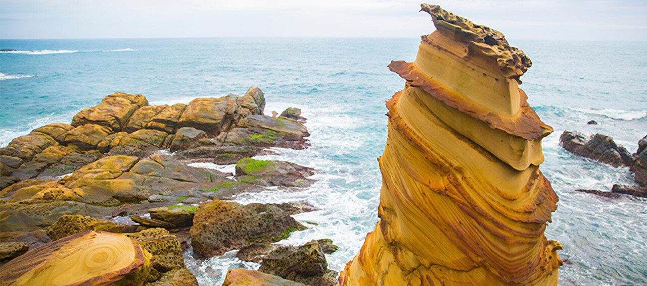 經過長時間風化與海浪侵蝕,形成獨特的紋理與色彩。