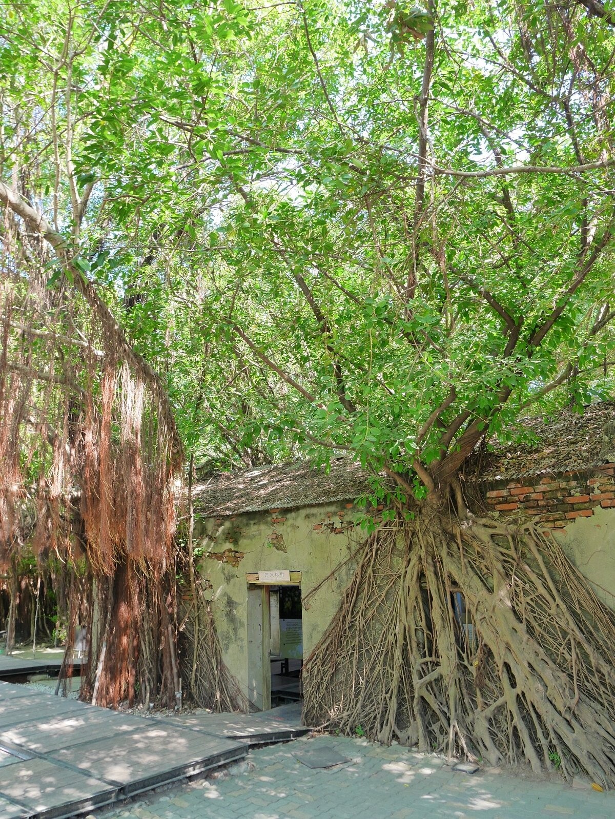 榕樹的根系逐漸侵入建築,