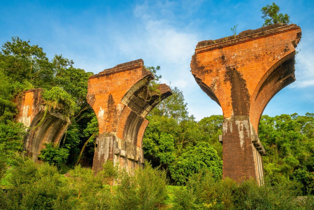 這座百年鐵道橋樑因地震而部分倒塌,留下紅磚拱橋與斷裂橋體的特殊景觀,因此被稱為「龍騰斷橋」,也有人稱它為 台灣版天空之橋。如今這裡已成為苗栗非常熱門的旅遊與拍照景點。