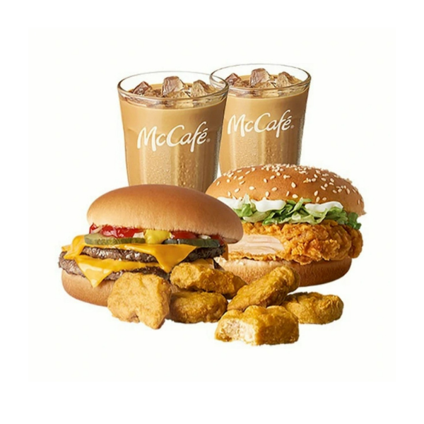 雙層牛肉吉事堡+勁辣雞腿堡+麥克雞塊+焦糖冰奶茶X2